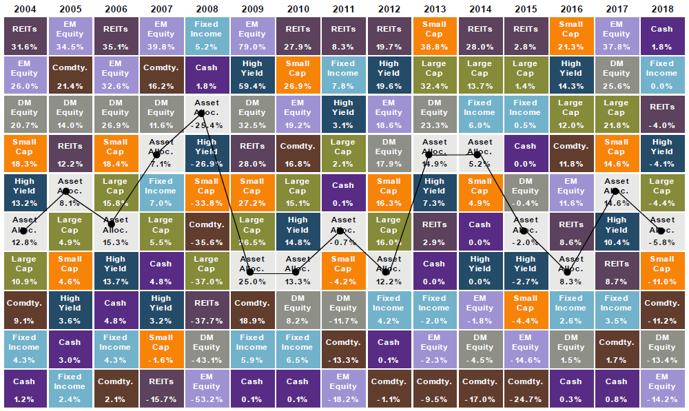 Two key takeaways after a year like 2018 are 1) Recognize your time horizon, and 2) Embrace diversification. Time is your best friend on the path towards achieving your financial goals. Diversification helps keep you on that path. Owning a globally-diversified portfolio including international stocks and bonds can improve your overall risk-adjusted returns. You will never own 100% of the best performing asset classes and, consequently, you will never be over weighted in the worst. Expect the steady stream of headlines to continue in 2019 – trade wars, Brexit, North Korea, political showdowns, the Fed – but sleep soundly knowing that time and diversification are under your pillow.