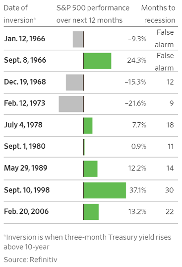 Another more reliable predictor of economic recessions is the yield curve. Every recession since the 1950s was preceded by an inverted yield curve, where longer-term U.S. Treasuries yield less than shorter-term U.S. Treasuries. Investors loaning money for a longer period of time expect compensation in the form of higher interest rates. When shorter-term rates are higher, it signals concerns about future economic growth. The yield curve came close to inverting during the 4th quarter, though has yet to do so. The problem with reading yield curve tea leaves is that even if there is an inversion, stocks can still continue posting strong gains.