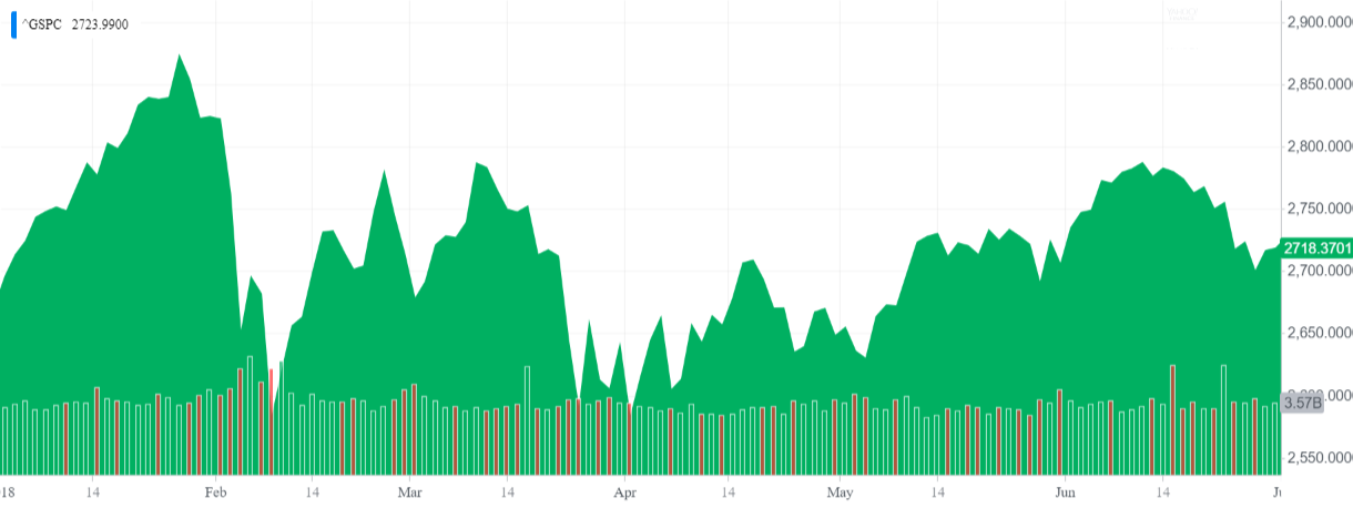 Every investor knows the old cliché that the stock market is like a roller coaster, up and downs, twists and turns, both an exhilarating and scary ride. However, the roller coaster analogy doesn’t always quite fit. A roller coaster never really goes anywhere, always ending-up right back where it started. Meanwhile, stocks tend to march higher over time, though certainly not without a few adventures along the way. However, with summer vacations and trips to amusement parks in full swing, it occurs to us the first half of 2018 has actually proven the old roller coaster stock market truism correct. If 2017 was like the tea cups at Disneyland, 2018 has been more like the Viper at Six Flags. Consider the year-to-date chart of the S&P 500: